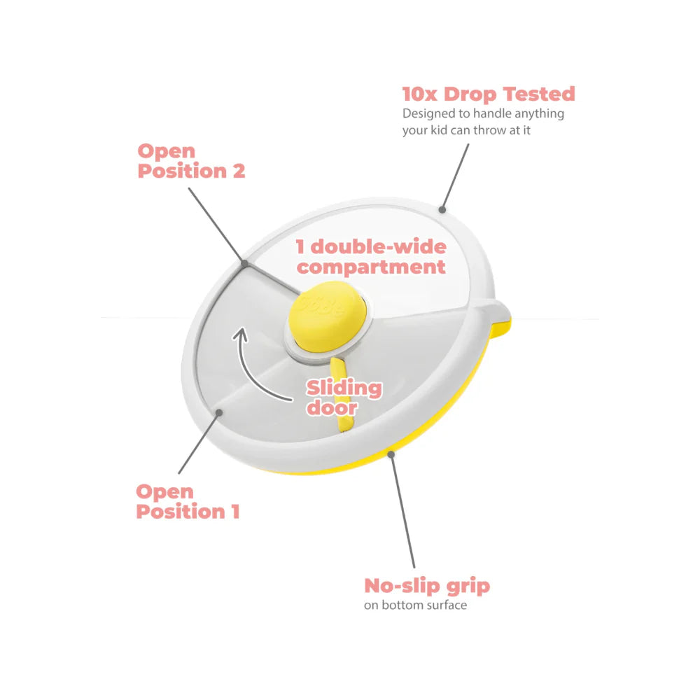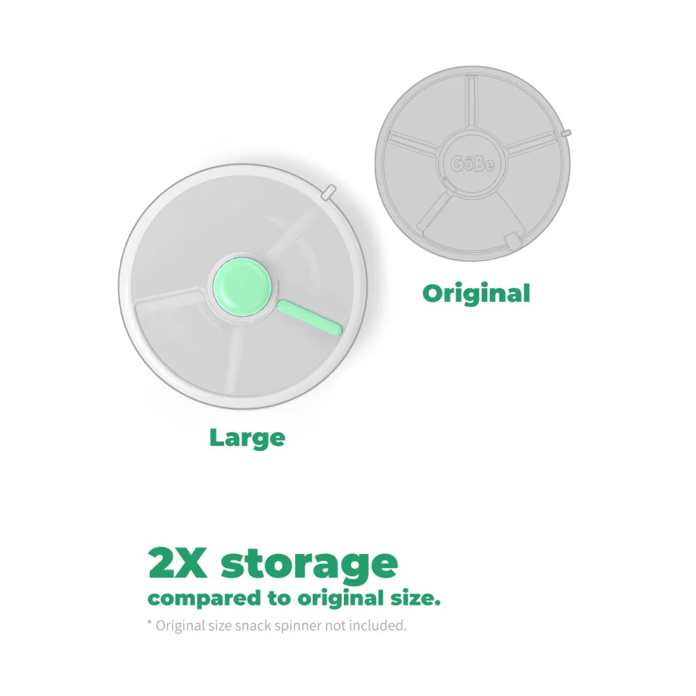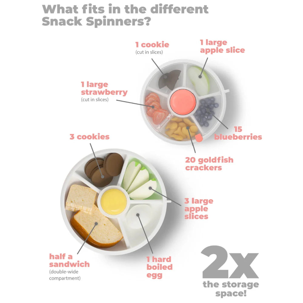The GoBe Snack Spinner is the only spill (and mess) resistant snack container that empowers your child to choose between five different snacks in a safe and engaging eating environment. With the simple push of a button, your little one will continue strengthening neural connections by learning how to access each compartment through a flip top mechanism. Moreover, the level of autonomy your child will exercise by actively choosing what to eat will help them develop healthy relationships with food that will continue to grow with them.